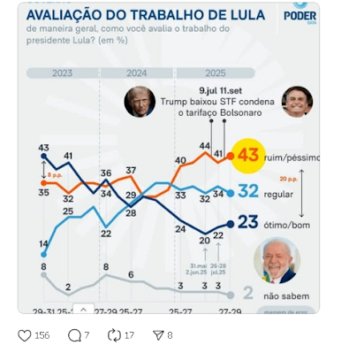Apesar da militância de redação passar 24 horas por dia defendendo o regime, apenas 23% dos participantes da pesquisa do Poder360 acreditam que o Descondenado faz um bom ou ótimo trabalho.