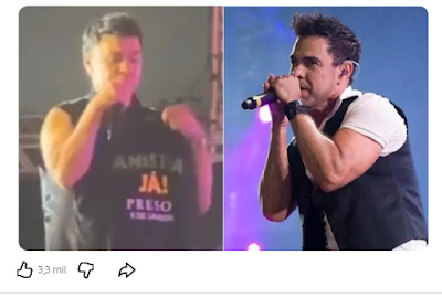Zezé de Camargo pediu anistia!!!! O show aconteceu no 10º Festival do Camarão de Porto Belo/SC. Esquerdistas não gostaram! Só Caetano que pode gritar suas opiniões.
