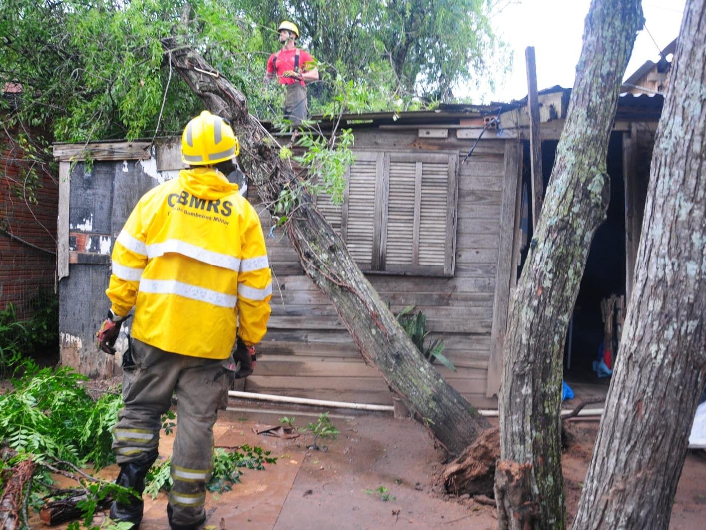 O forte temporal que atingiu Porto Alegre na tarde desta segunda-feira (15) provocou a queda de uma árvore sobre uma residência no bairro Cavalhada, na zona Sul da cidade. Parte do telhado foi destruída, e equipes do Corpo de Bombeiros trabalharam no local para remover o tronco e os galhos com o auxílio de uma serra elétrica.