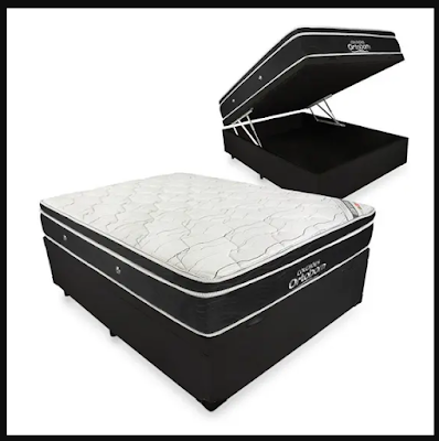Cama Box Com Baú Casal Preto Blindado + Colchão De Molas Ensacadas – Ortobom – Elegant SuperPocket 138x188x70cm