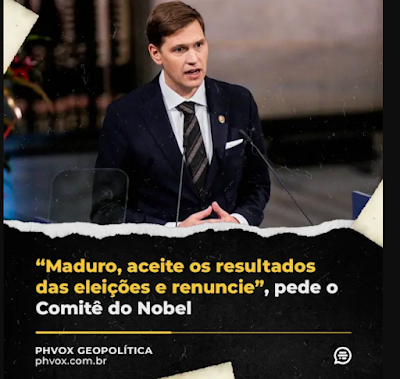 Origem: RS Notícias: Comitê do Nobel pede que Maduro aceite resultado eleitoral e renuncie ao cargo