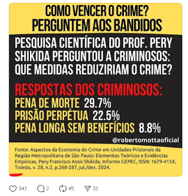 Como vencer o crime? Os próprios criminosos respondem: pena de morte, prisão perpétua e penas muito longas.Nada disso existe no Brasil.Fonte: e-revista.unioeste.br