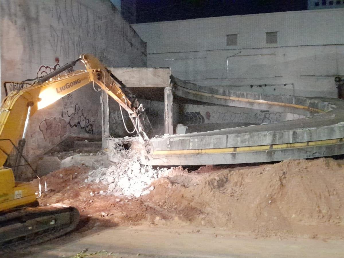 Na noite de sexta, máquinas da Secretaria Municipal de Obras e Infraestrutura (Smoi) iniciaram os trabalhos manuais de demolição. A prefeitura informou que a limpeza dos entulhos na rua da Conceição e na calçada da rodoviária ocorrerá nas próximas semanas.