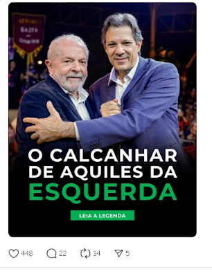 A esquerda brasileira vive um dilema de sucessão.Lula chegará à eleição de 2026 com 81 anos, o teto de rejeição mais alto da sua trajetória e um partido que depende quase exclusivamente da sua figura para existir.Sem ele, sobra pouco: um ministro da Fazenda marcado pela imagem de “Taxxad”, um Boulos que empolga a militância, mas que não engana o centrão, e uma base que já não se reconhece mais no discurso sindical porque entendeu que o caminho é mais Brasil, menos Brasília.O problema não é apenas de idade, mas de identidade. O PT envelheceu com o seu líder e insiste em discursos que não falam mais com o país real.Longe das rodas de conversa das universidades federais e dos think-tanks da Barra da Tijuca, o discurso petista soa cada vez mais como eco de um passado que o próprio eleitor tenta esquecer. O cientista político pode adornar os dados, mas o discurso já não passa de palavras jogadas ao vento.A dúvida que fica é: quem será o candidato da esquerda? E, mais importante, o que mudaria na sua vida — na economia, no emprego, nos investimentos — se ele vencesse?No dia 10 de novembro, às 19h, na transmissão Poder & Mercado, eu, Stormer e Fernando Ulrich vamos analisar como cada possível cenário eleitoral pode impactar o Brasil e o seu patrimônio, projetando oportunidades e riscos antes, durante e depois das urnas.Clique no link a seguir e inscreva-se para assistir ao vivo, gratuitamente, uma das análises mais importantes do ano: