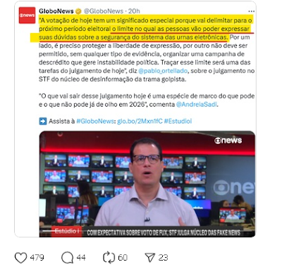 O militante de redação da Lula News fala uma barbaridade dessas com a maior naturalidade.Apenas em DITADURAS não é permitido questionar o processo eleitoral.