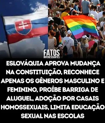 Source: RS Notícias: Eslováquia aprova mudança na Constituição, reconhece apenas os sexos masculino e feminino, proíbe barriga de aluguel, adoção por casais homossexuais, limita educação sexual nas escolas
