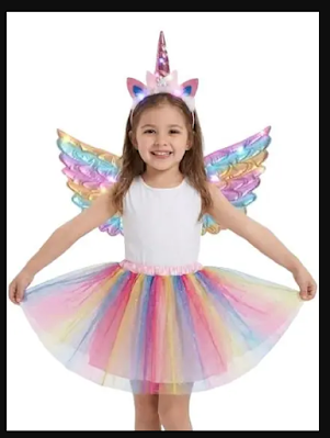 - Conjunto completo: saia delicada, asas coloridas e tiara com luzes de LED.