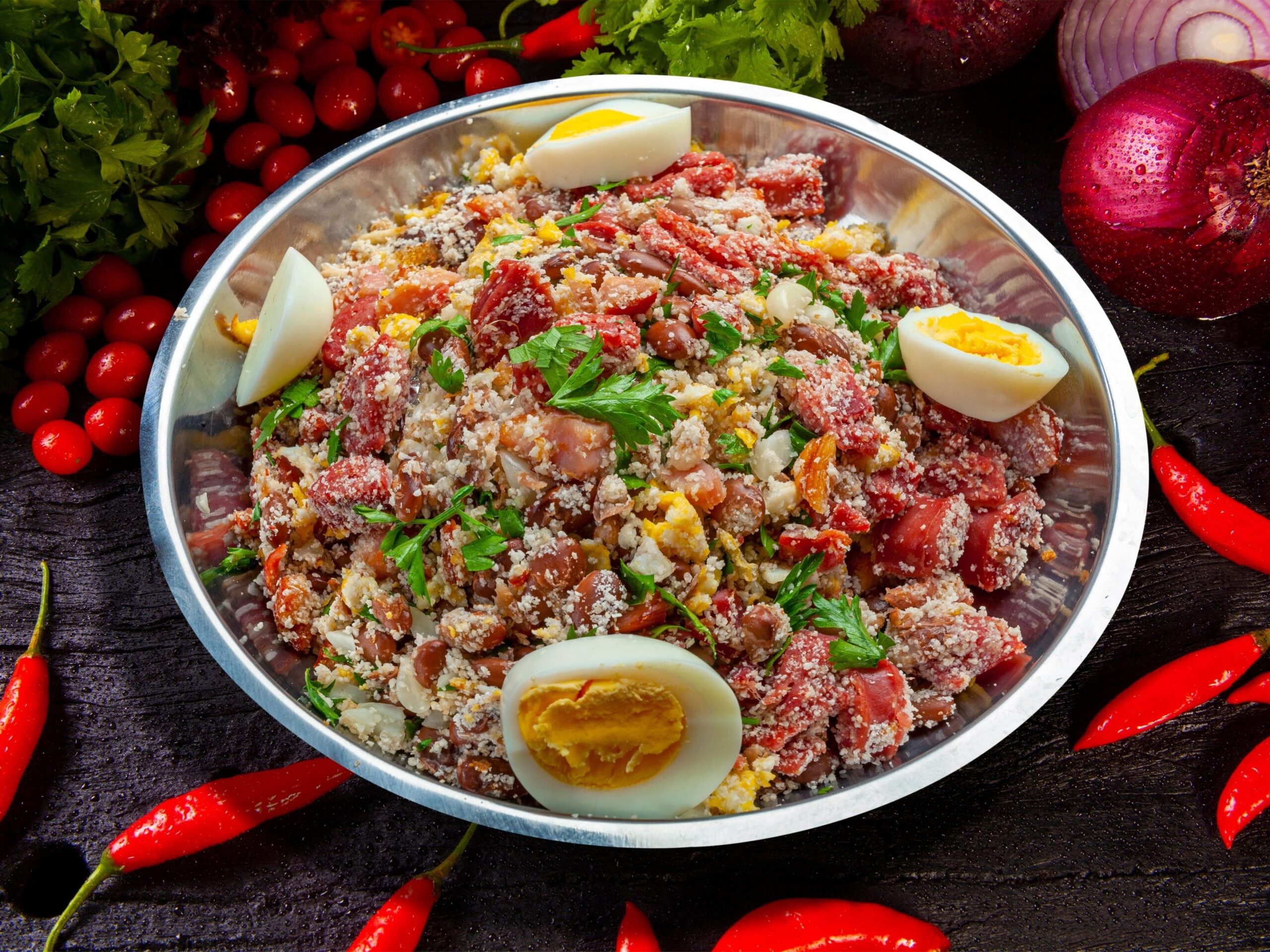 O prato reúne influências portuguesas, africanas e indígenas e, ao longo do tempo, ganhou novos ingredientes conforme os caminhos percorridos. A receita tradicional combina feijão cozido, bacon, linguiça, ovos, farinha e temperos, resultando em um preparo rápido, nutritivo e profundamente ligado à identidade culinária brasileira.
