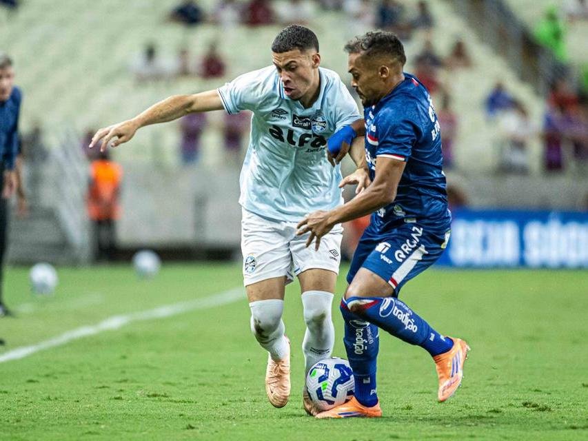 Fortaleza, 10 de novembro de 2025 – Após três tropeços consecutivos como visitante, o Grêmio conquistou um ponto valioso ao empatar em 2 a 2 com o Fortaleza, na noite de domingo (9), no Castelão, pela 33ª rodada do Brasileirão. O Tricolor saiu atrás, virou com brilho de Carlos Vinícius, mas cedeu o empate nos acréscimos. Com o resultado, o time comandado interinamente por Sidnei Lobo (substituto do suspenso Mano Menezes) chega aos 42 pontos e ganha fôlego para as cinco rodadas finais. O próximo desafio é só no dia 19, contra o Vasco, na Arena do Grêmio.Virada relâmpago e falhas decisivasO jogo começou em ritmo alucinante. Aos 4 minutos, Kannemann errou passe na saída de bola, Bareiro aproveitou na meia-lua e chutou colocado, sem chances para Volpi: 1 a 0 Fortaleza. O empate veio em falha cômica do goleiro adversário: Breno não viu Carlos Vinícius nas costas, colocou a bola no chão e foi surpreendido pelo centroavante gremista, que só empurrou para o gol vazio — 1 a 1.A virada tricolor saiu aos 28′, novamente com Carlos Vinícius, agora como garçom: ele tabelou pela esquerda e serviu Marlon, que invadiu a área e finalizou rasteiro no canto. O Grêmio dominava as ações, com Volpi segurando uma falta perigosa do Fortaleza.Empate no fim e chances perdidasDesesperado pela vitória em casa, o Fortaleza voltou do intervalo com tudo. O empate veio aos 78′, em cobrança de falta longa de Matheus Pereira: Volpi saiu adiantado e foi encoberto pela bola, que morreu no fundo da rede — 2 a 2. Sidnei Lobo mexeu no time: entraram Cristaldo e André Henrique para oxigenar o ataque, seguidos por Dodi e Gustavo Martins para blindar a defesa.A melhor chance gremista foi com Aravena, já nos acréscimos: servido cara a cara com Breno, o chileno finalizou por cima, quase na linha do gol. Final: 2 a 2.Ficha Técnica