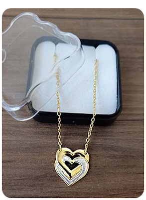 Faça qualquer compra na Imagem Folheados, acima de R$ 160,00, e ganhe esta linda gargantilha folheada a ouro, contendo entremeio em forma de corações entrelaçados com aplique prateado.