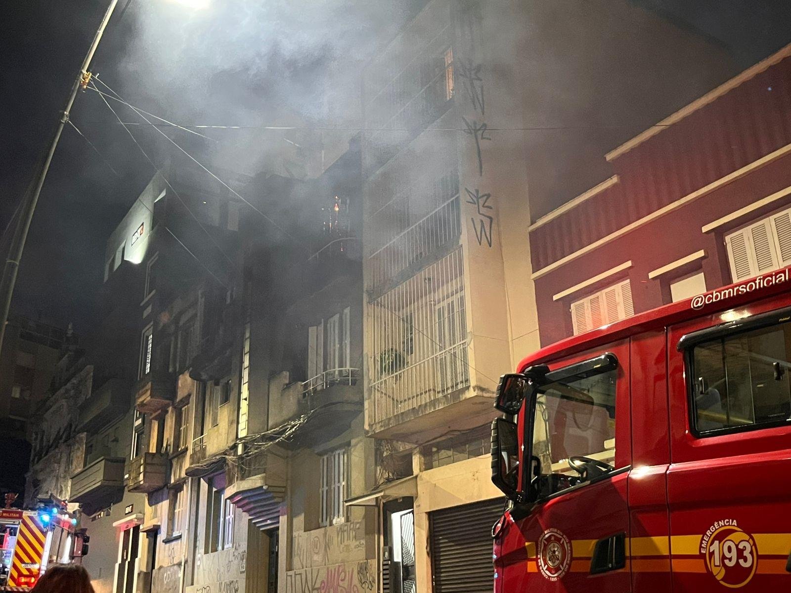 - O fogo começou em um apartamento no terceiro pavimento, totalmente destruído.