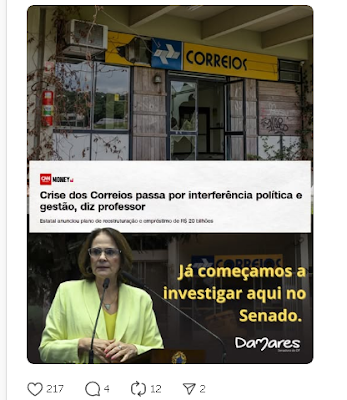 Conseguiram quebrar uma empresa pública que trabalha com monopólio no setor. É só incompetência, ou tem mais coisas por trás disso? Vamos descobrir. Abrimos um procedimento de fiscalização a Comissão de Fiscalização e Controle. Apresentei o requerimento, e o senador