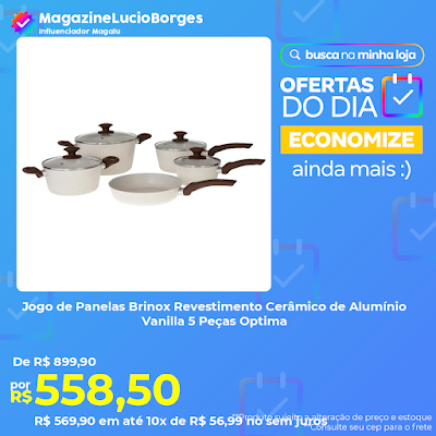 *Jogo de Panelas Brinox Revestimento Cerâmico de Alumínio Vanilla 5 Peças Optima*