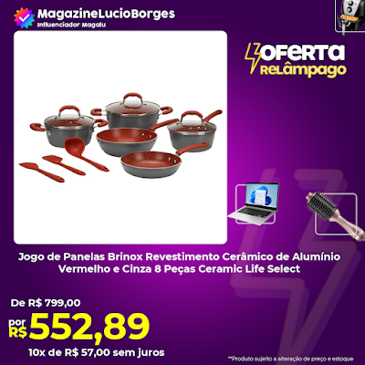 *Jogo de Panelas Brinox Revestimento Cerâmico de Alumínio Vermelho e Cinza 8 Peças Ceramic Life Select*