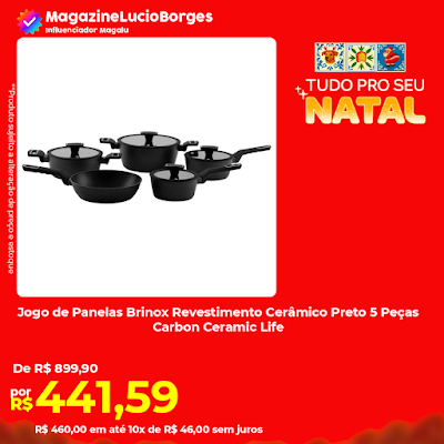 Origem: RS Notícias: Jogo de Panelas Brinox Revestimento Cerâmico Preto 5 Peças Carbon Ceramic Life
