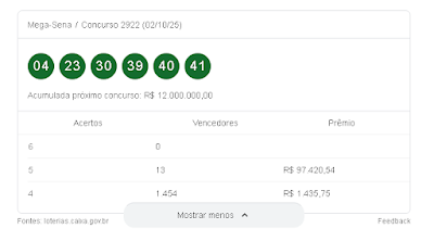 Posted inUncategorized RS Notícias: Mega-Sena/Concurso 2922 (02/10/25) Posted by rsnotici October 3, 2025No Comments Fonte: https://www.google.com/search?q=mega+sena&rlz=1C1CHNY_pt-BRBR1021BR1022&oq=&aqs=chrome.0.69i59j46i131i199i433i465i512j35i39i512i650j69i60l5.2564j0j4&sourceid=chrome&ie=UTF-8 Source: RS Notícias: Mega-Sena/Concurso 2922 (02/10/25) rsnotici View All Posts Post navigation Previous Post RS Notícias: Chuva predomina no RS com avanço da instabilidade nesta sexta-feira; veja a previsãoNext PostRS Notícias: Três pilares sustentam o regime