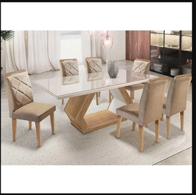 Origem: RS Notícias: Mesa Alvorada 180 Tp Mdf Vidro Canto Reto 6 Cadeiras Rufato E Imbuia E Off Serig Off