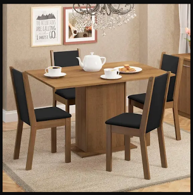 Imagem meramente ilustrativa. A mesa é composta pela mesa e quatro cadeiras.