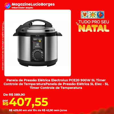 *Panela de Pressão Elétrica Electrolux PCE20 900W 5L Timer Controle de TemperaturaPanela de Pressão Elétrica 5L Elec – 5L Timer Controle de Temperatura*