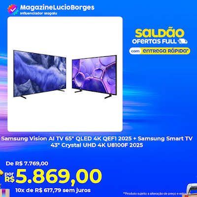 *Samsung Vision AI TV 65 QLED 4K QEF1 2025 + Samsung Smart TV 43 Crystal UHD 4K U8100F 2025*