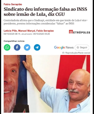 Source: RS Notícias: Sindicato informou dados falsos sobre irmão de Lula ao INSS, aponta CGU