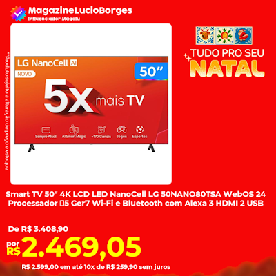 *Smart TV 50 4K LCD LED NanoCell LG 50NANO80TSA WebOS 24 Processador α5 Ger7 Wi-Fi e Bluetooth com Alexa 3 HDMI 2 USB*