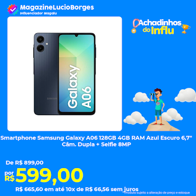 *Smartphone Samsung Galaxy A06 128GB 4GB RAM Azul Escuro 6,7 Câm. Dupla + Selfie 8MP*