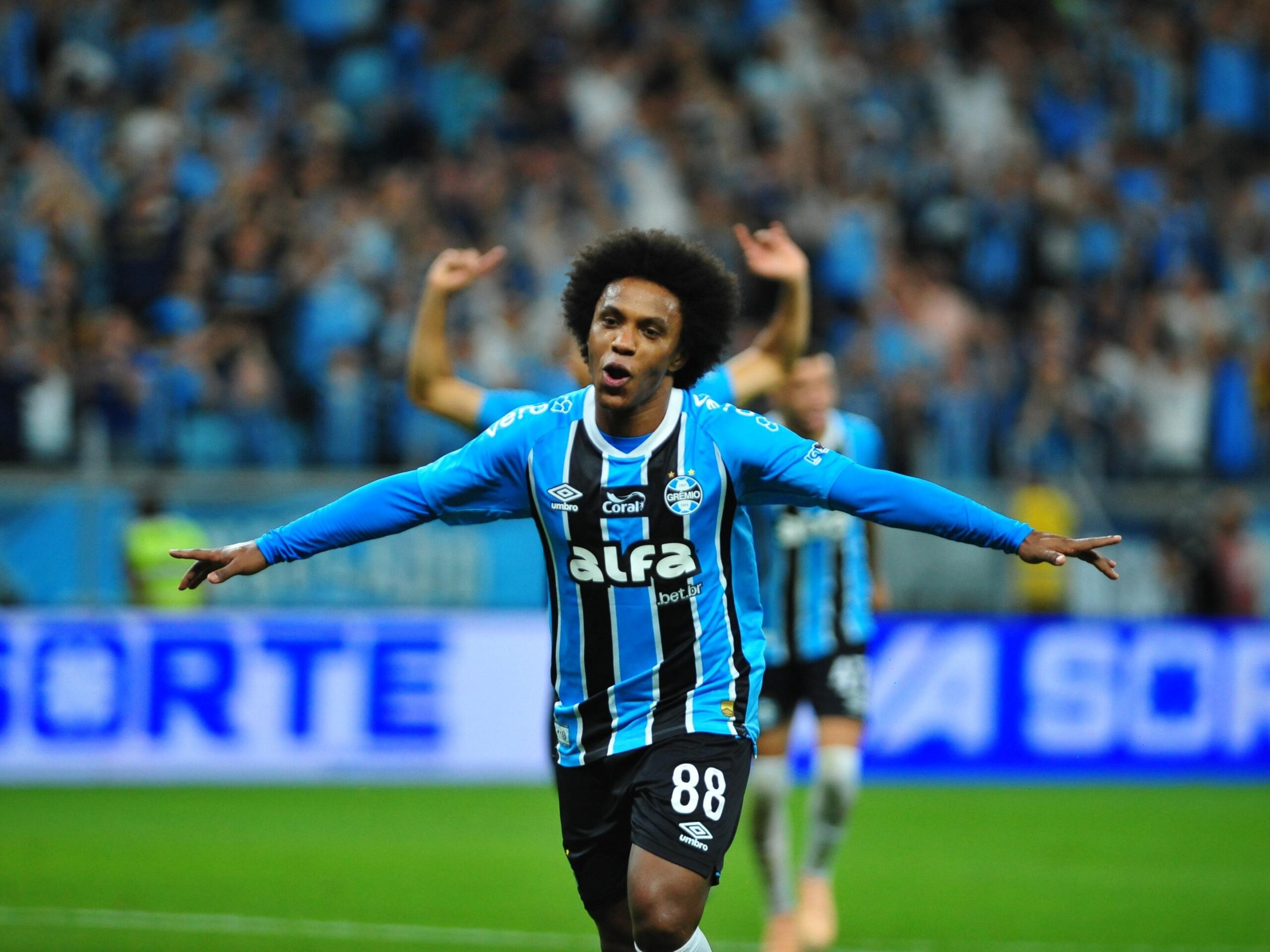 O meia Willian foi um dos destaques da vitória do Grêmio por 3 a 2 sobre o Palmeiras, na Arena, pela 36ª rodada do Brasileirão. Autor de um dos gols, ele entrou no intervalo e mudou o panorama da partida, que estava empatada naquele momento.